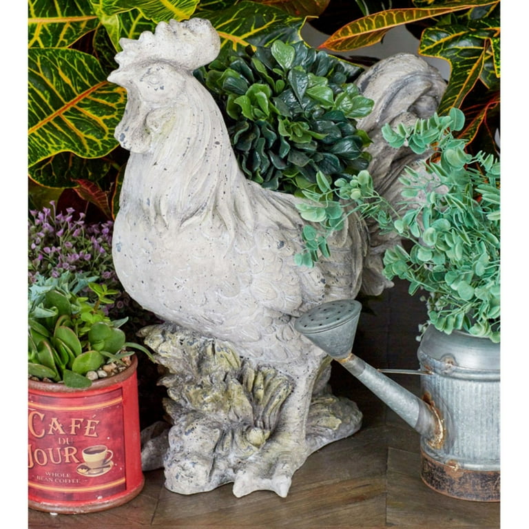 Decmode Distressed 19 X 19 Inch Resin Rooster Planter Dark Brown Walmart Com
